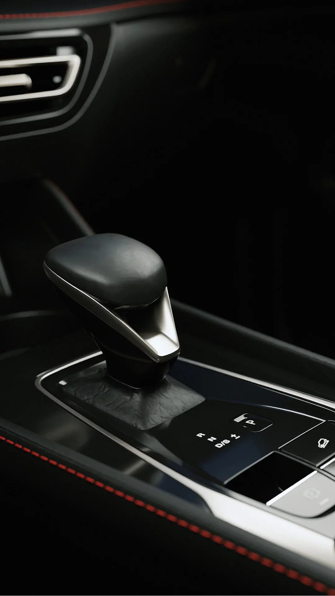 A three-dimensional grille design creates depth and visual strength, defining the HS’s confident front identity.