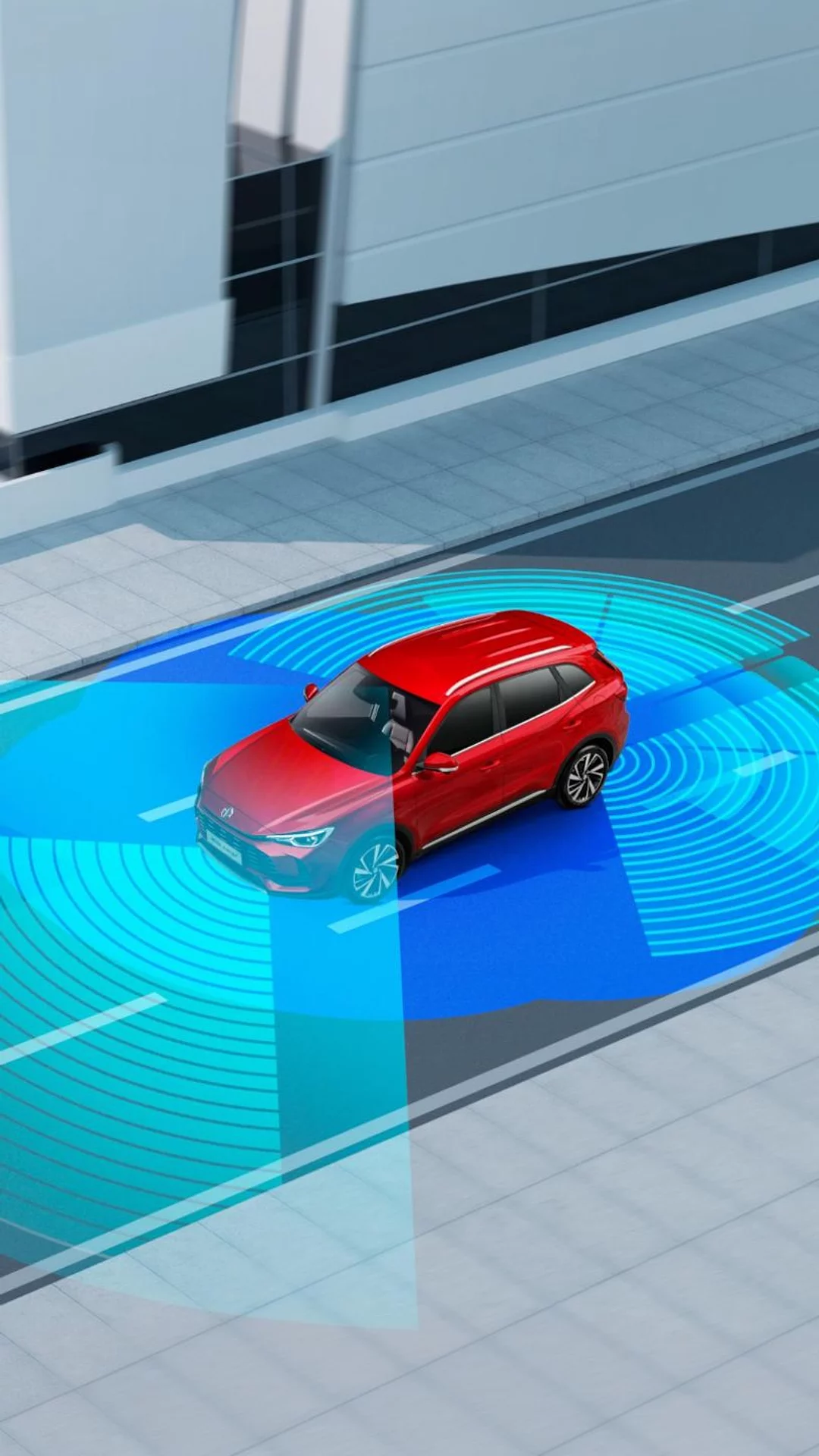A surround-view camera system offers a complete overhead perspective, enhancing visibility during parking and low-speed manoeuvres.